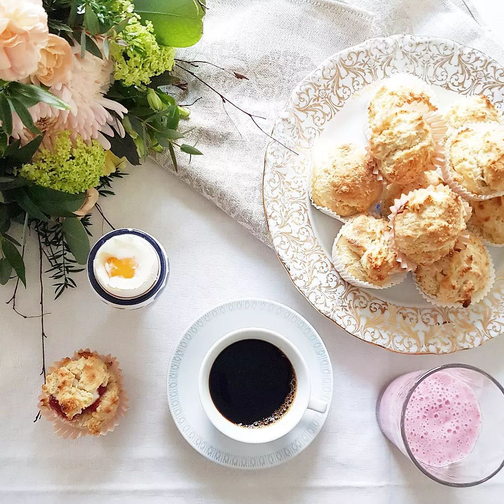 Blanda samman alla de torra ingredienserna. Rör ihop olja och mjölk och blanda med övrigt. Lägg muffinsformar i en muffinsplåt och klicka i scones degen. Grädda i mitten av ugnen cirka 10 minuter eller tills de fått fin färg. Servera med valfritt tillbehör.